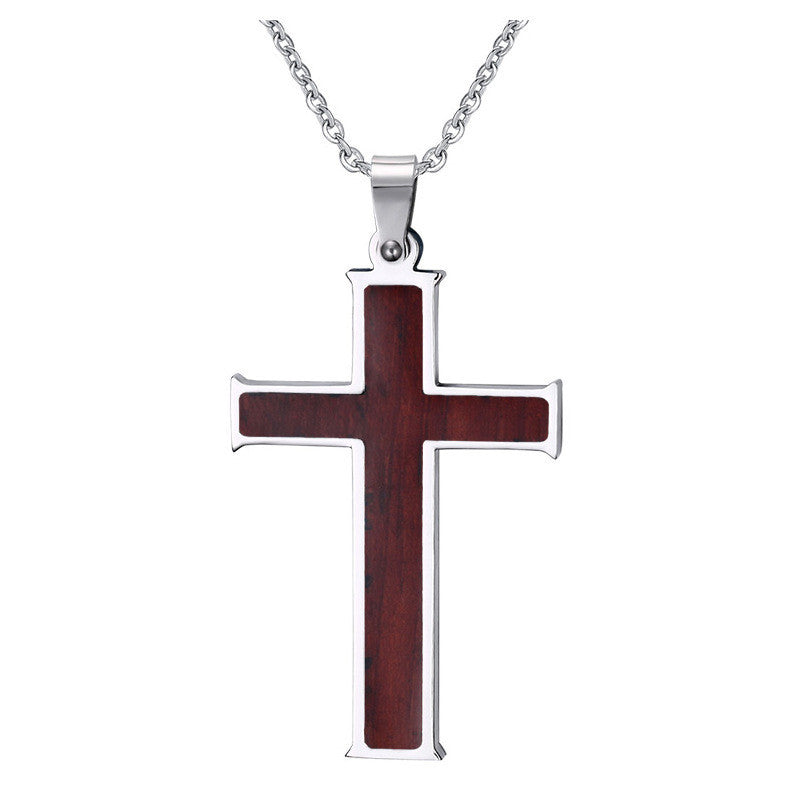 Inlaid wood grain cross necklace